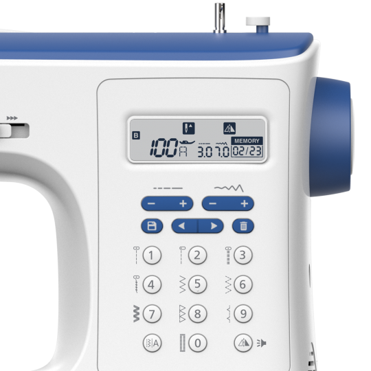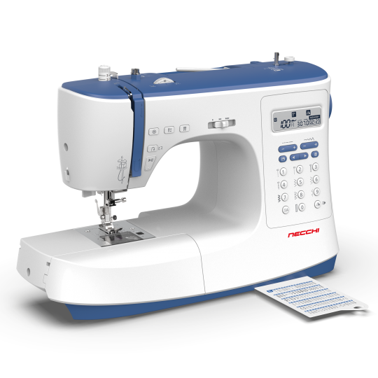 Necchi NC-103D Computerized 316 -Stitch Sewing Machine offers the ability to select the wanted stitch with a simple press of a button and clear LCD display. Specialty includes 10 styles of 1-step buttonholes, 2 sets of alphanumeric stitch for basic monogramming. The competent design of the sewing machine including the optimum viewing angel and comfortable working surface.